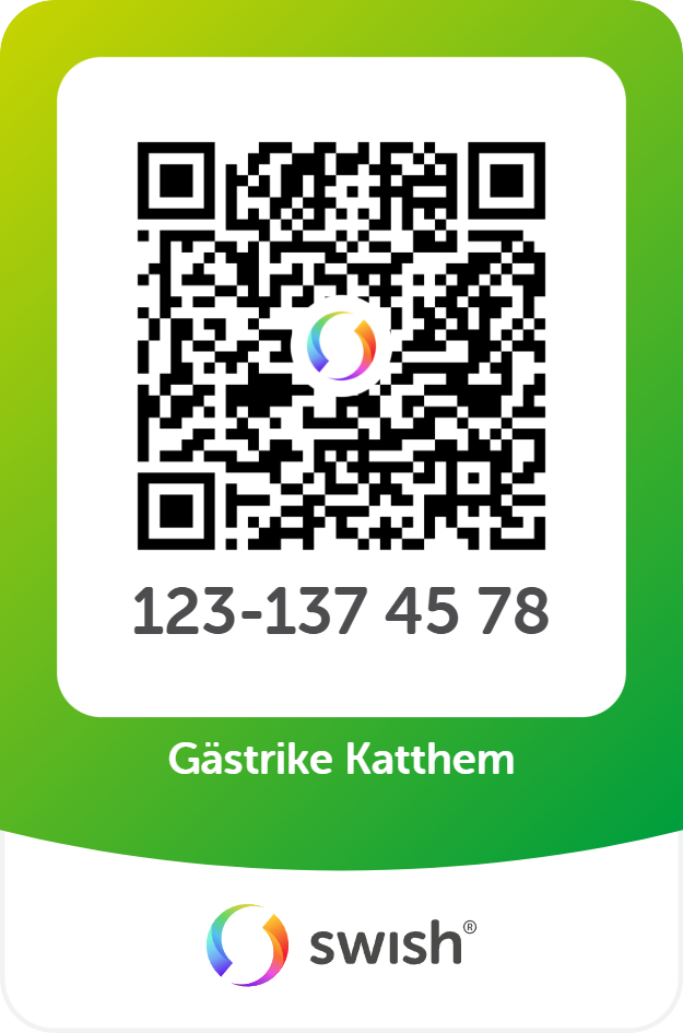 Bli medlem genom att betala medlemsavgiften med Swish. Börja genom att öppna appen på din telefon och scanna QR koden eller skriv in vårt mottagarnummer: 123-137 45 78 för hand.